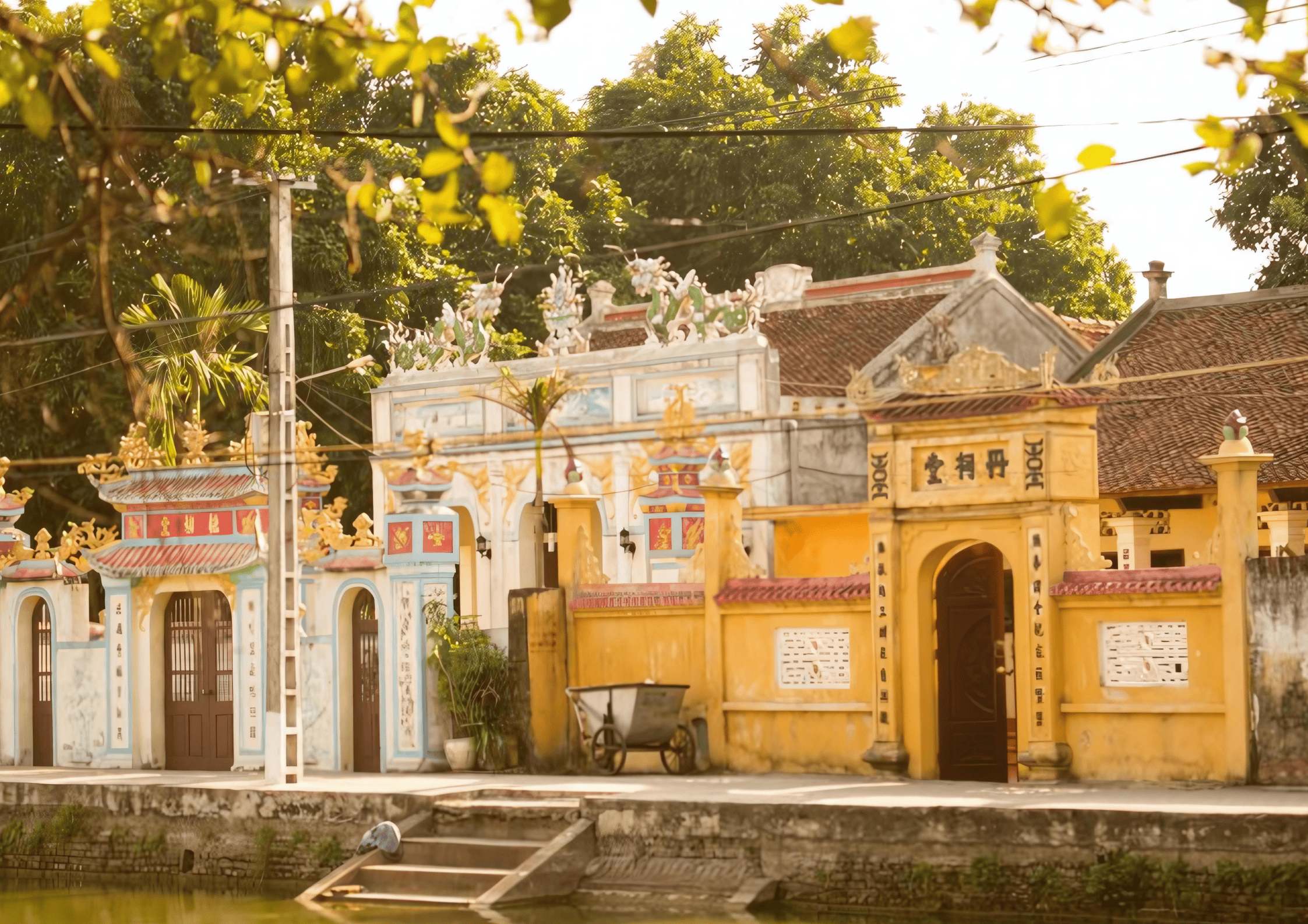 Đền Mẫu Hưng Yên không chỉ là một điểm đến tâm linh mà còn là một kiệt tác kiến trúc. Nổi bật là nghi môn với lối kiến trúc chồng diêm hai tầng tám mái và cửa vòm cuốn, đi kèm bức đại tự “Dương Thiên Hậu – Tống Triều” bằng gốm lam thời Nguyễn. Qua cổng, không gian yên bình với khói nhang, tiếng chim và cảnh sắc thanh tịnh hiện ra. Ba cây cổ thụ (đa, xanh, si) mọc chồng lên nhau, trong đó có cây 800 tuổi, biểu tượng cho sự bảo vệ của Thánh Mẫu.